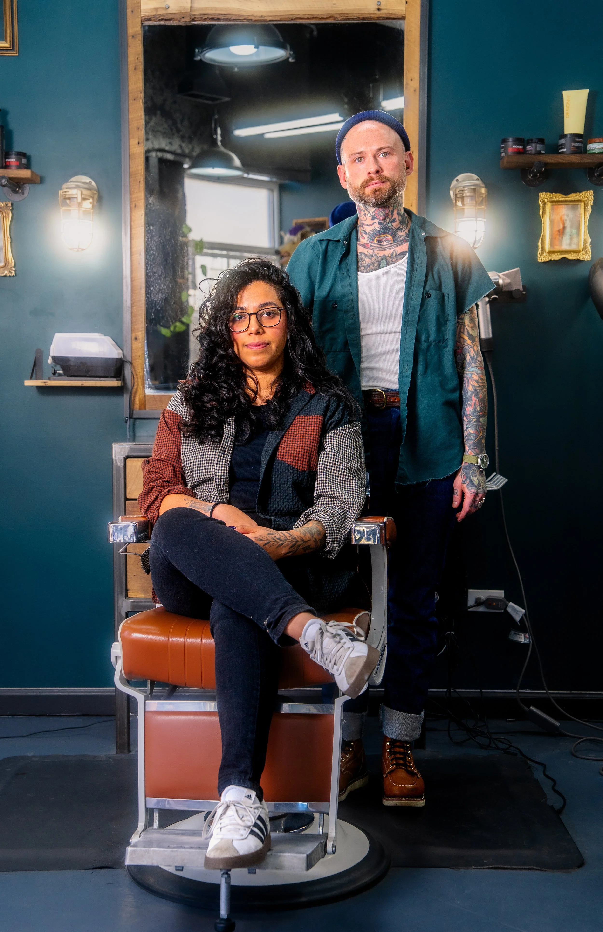 An intimate 6 chair Chicago Barbershop not just for men, but for all folks! We offer services for all types of individuals looking for that specific short haircut. We are a crew of talented barbers who pride ourselves on being educated in all different hairstyles. Created by two weird individuals, Nina Carrizales and Nick Kinsley, with a plan to build a barbershop that incorporates techniques from cosmetology and barbering. It is important for us to be up to date in all different types of current hair trends and also be well rounded in different hair textures. We are located near the Western Blue Line stop in the Logan Square Bucktown area across from Dark Matter Coffee. Stop in for a fresh cut, a complimentary drink, and an atmosphere you won’t want to leave.